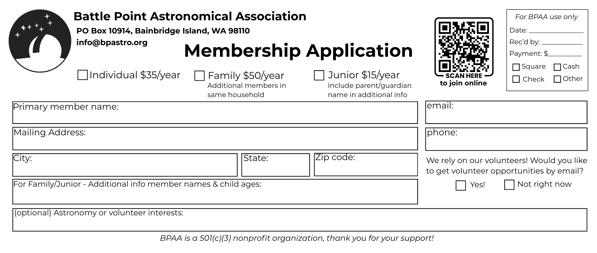 Membership to Battle Point Astronomical Assocation (BPAA) Includes